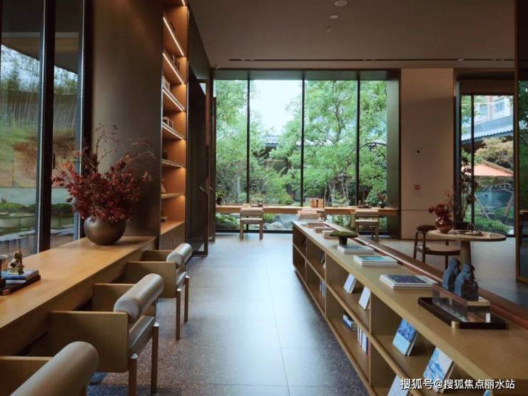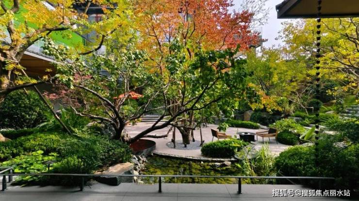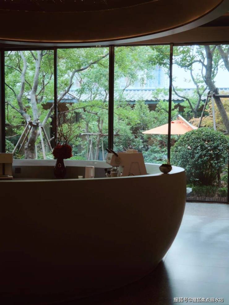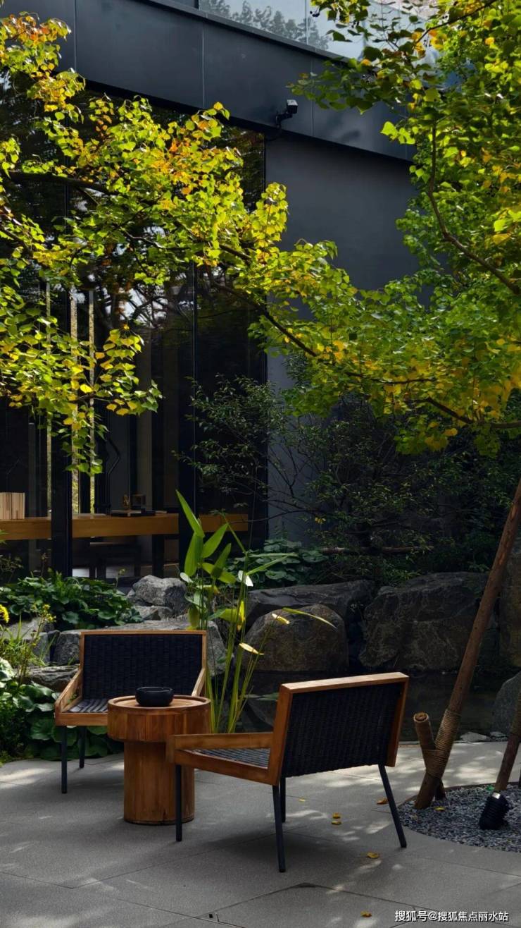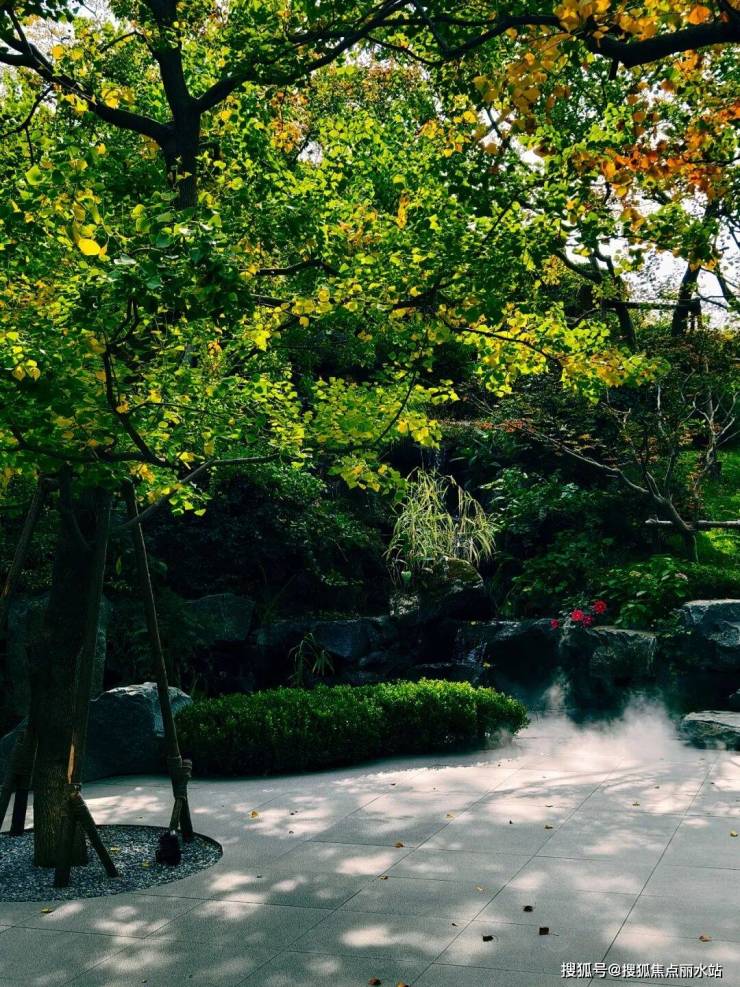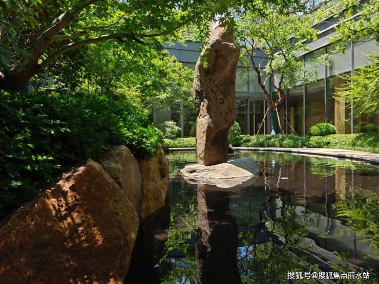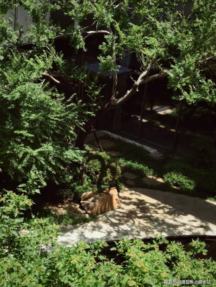该项目的名气不如滨湖国际,但可圈可点之处颇多,其下沉庭院的假山、植物,呈现野奢之美。
