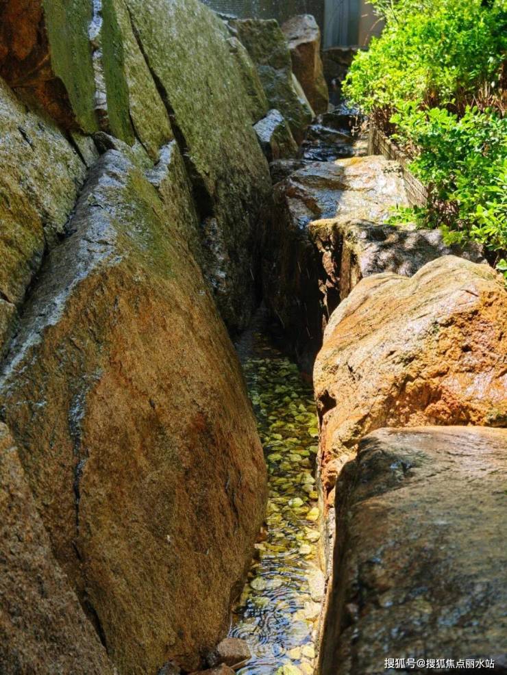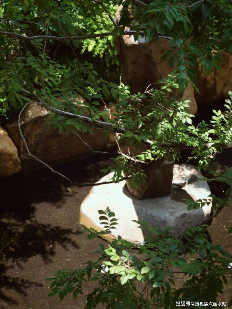 水石景观设计,下沉庭院「虽由人作,宛自天开」,有一种「山野石涧」的野奢之美!