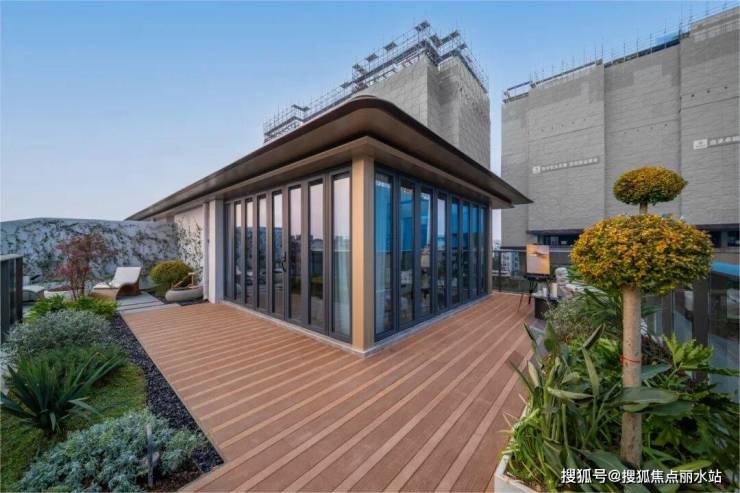 如上叠可以私梯直达的顶层露台,不同于一般的全敞开式设计,部分空间用玻璃围合成了“阳光盒子”,甚至还配备了专属卫生间,未来可以是小朋友的游乐场,也可以是“大朋友”独处的隐逸空间。
