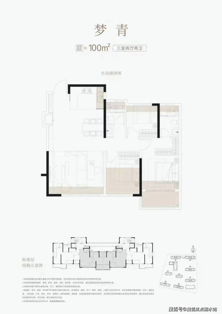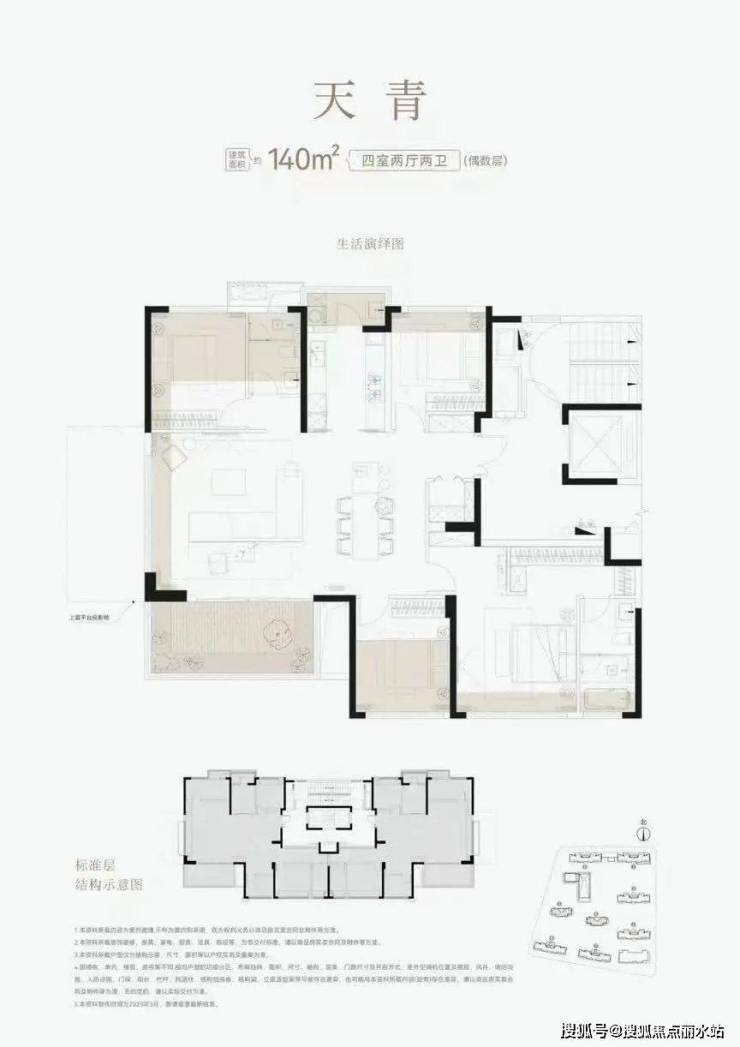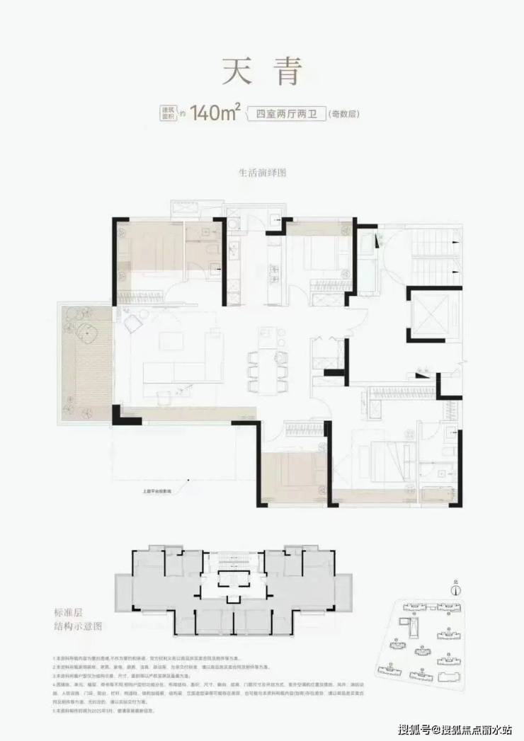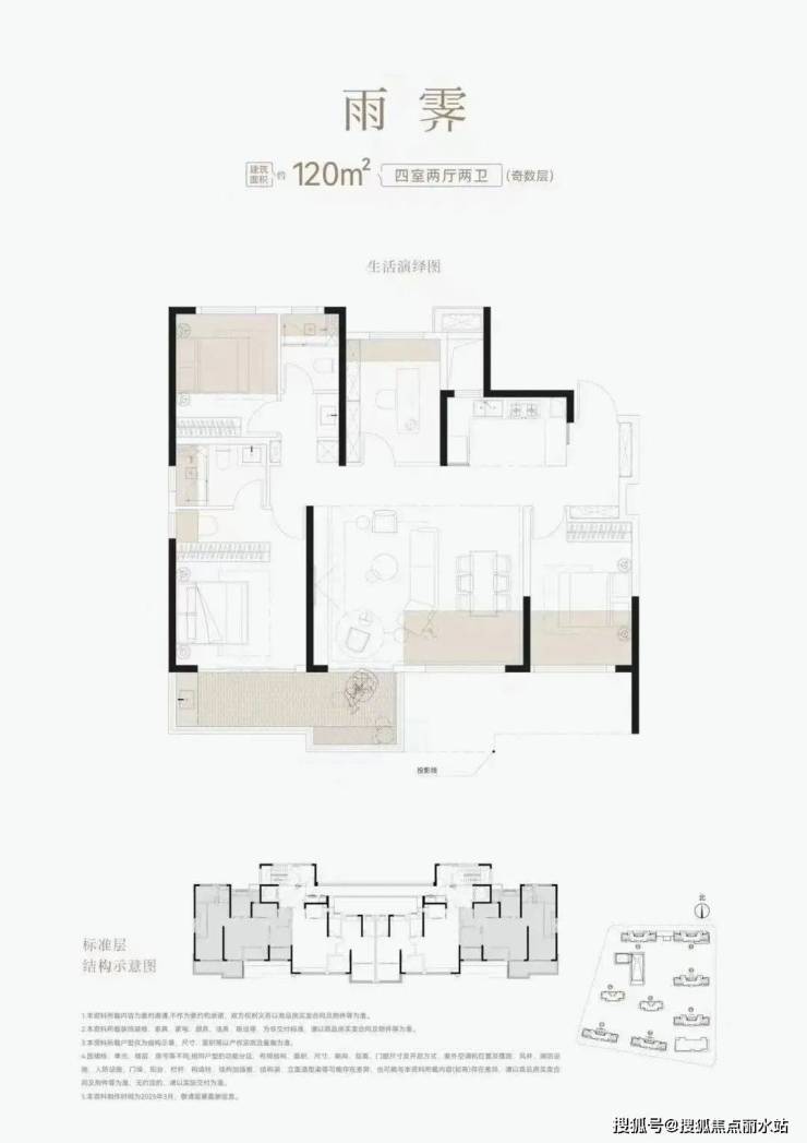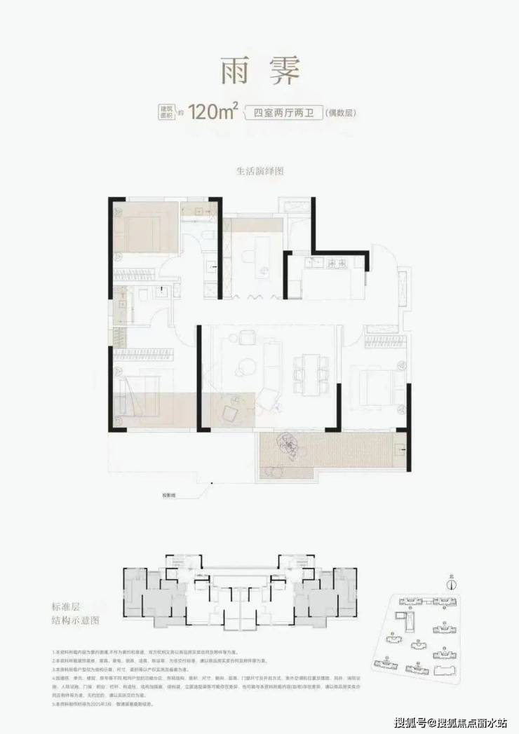 边户,通透性和功能性更强。分奇数层和偶数层,得房率约105%,进门处的卧室与主卧空间分区明确,还与客厅共享大尺度阳台。
