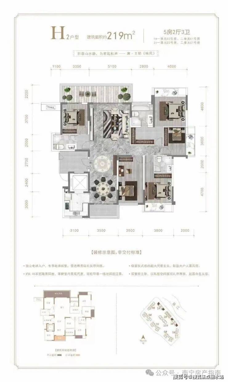 · 总楼栋:9栋11-19F高层住宅,其中(5栋板式结构的2梯2户,3栋2梯4户双单元塔楼)