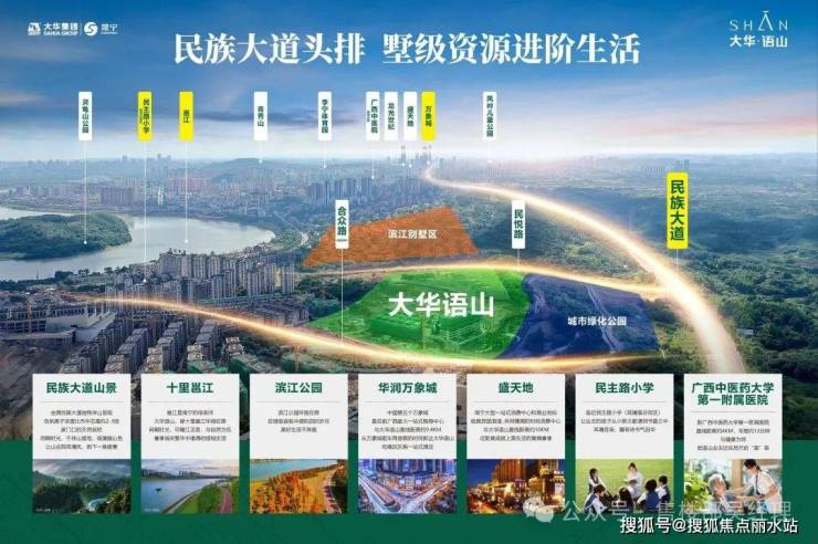南宁城市整体向东,城芯再扩容,大华语山位于青秀都芯圈、民族大道头排,比邻东盟CBD,无缝对接万象城、航洋、爱琴海城市广场、盛天地等成熟商务配套。