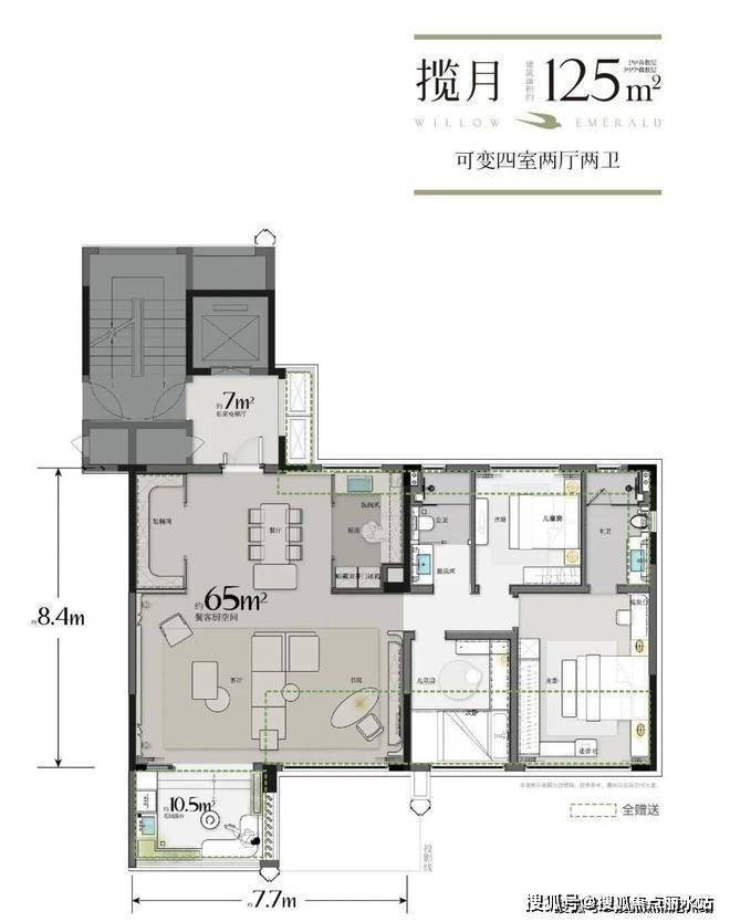 125㎡客厅开间7.7米,“3+1”灵动户型突破了传统户型的局限,以灵活多变的布局,满足你对生活的多元化需求。无论是追求高效的办公空间,还是渴望舒适的休闲区域,还是陪伴孩子快乐成长都可以满足。