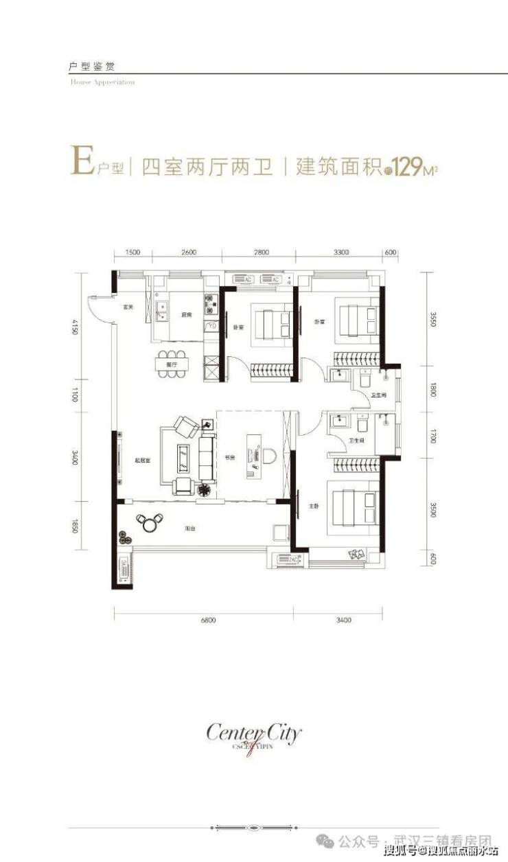 【E户型】建面约129平米,四室两厅两卫设计。南北通透,稀缺四房设计,约6.8米13平方南向大阳台,尽享徐徐微风和温暖阳光;三次卧自带观景飘窗,拥揽春华秋实四季美景。