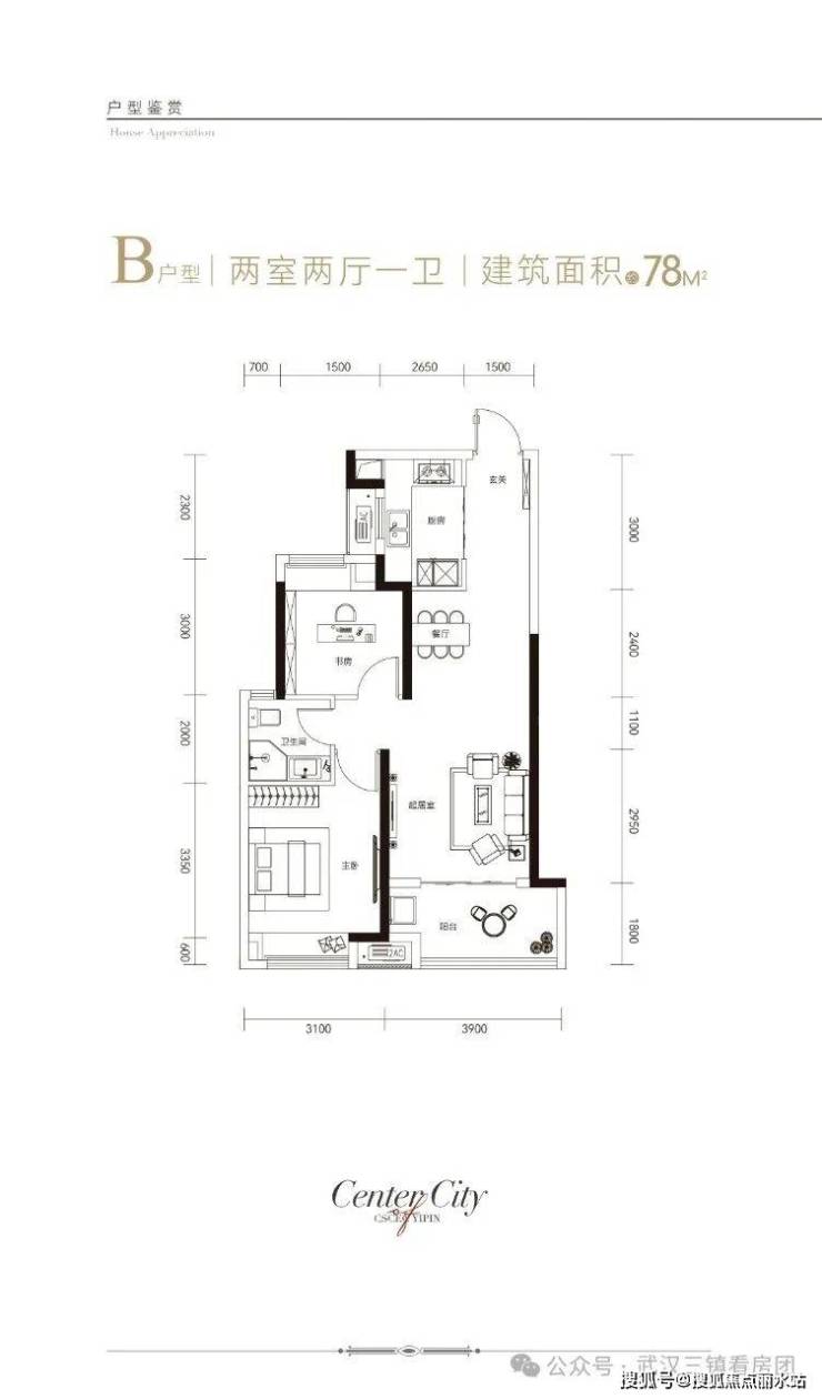 【B户型】建面约78平米,两室两厅一卫设计,户型方正、紧凑,动静分区,功能齐全。两开间朝南,约270°南向阳台,享阳光美景;客餐一体相连,U型厨房满足流线型操作,全景飘窗设计。