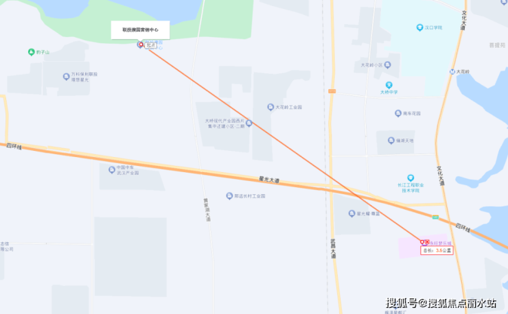 项目距离在建的江夏永旺梦乐城直线距离4公里左右,车行距离约5.5公里,自驾约十几分钟可达。