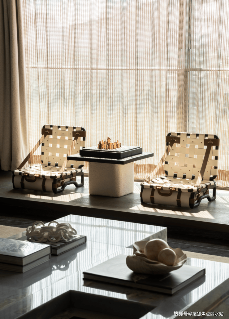 项目探索空间的居住逻辑,创造出隐奢的场域。空间中材质、奢石、皮革、琉璃、金属展现出丰富的肌理,氛围与艺术的叠加,表达了多元与包容的城市印象,因此奢华也呈现出不同的层次感。