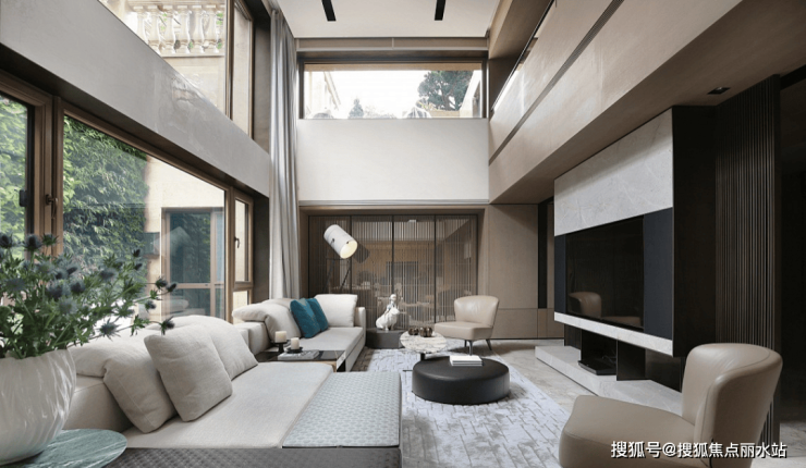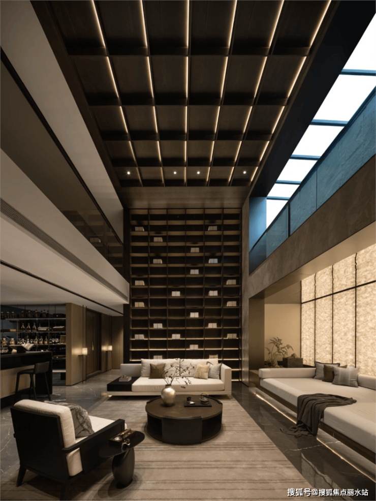 建面约226㎡百变全能艺墅,约5.8m挑高地下室空间,让原本封闭昏暗的负1层展露于地面之上,拥有超大采光面与景观面,全景落地窗最大程度的将阳光引入室内,翻倍享受顶奢生活,成为义乌大人物的第二会客厅。