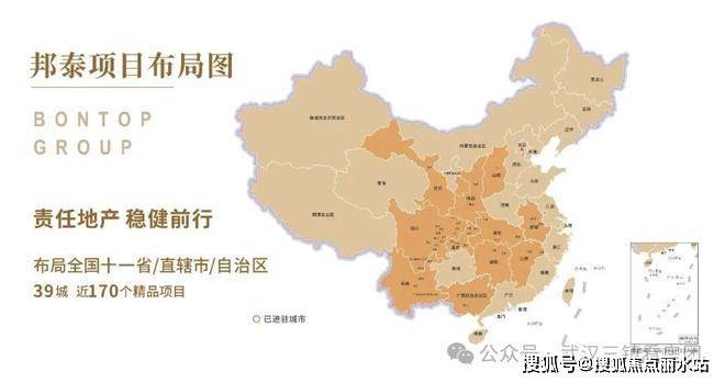 邦泰集团历经18年稳健发展,进驻全国39座城市,累计开发和运营近170个精品项目。以“责任地产”为品牌定位,从区域性深耕走向全国化,已布局成都、武汉、重庆、昆明、合肥、南宁、长沙、西安、南昌等城市及其周边城市群。