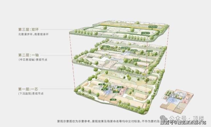 “立体景观芯”,下沉庭院复合型功能空间,非平面铺陈,目之所及皆是立体画境。