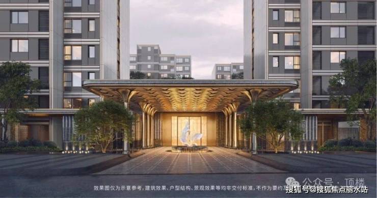 奢贵门庭,定制6瓣百合花雕塑以华贵之姿立于园中;地上归家大堂,百合花艺阵列呈现层叠绽放姿态;地下光厅,融合在地文化及国际酒店设计理念,打造专属归家尊仪。