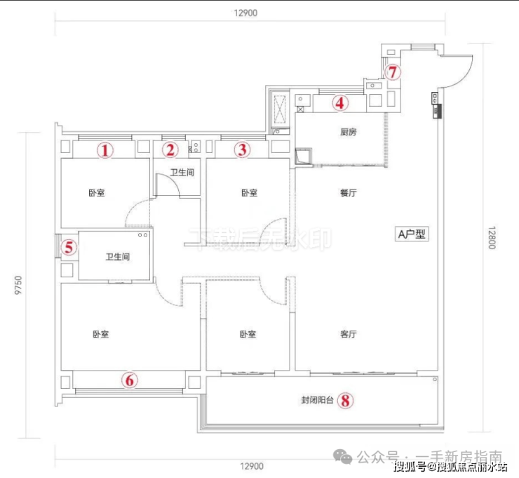 ③封闭阳台交付,阳台只算一半建筑面积,且南向房间均采用落地窗。