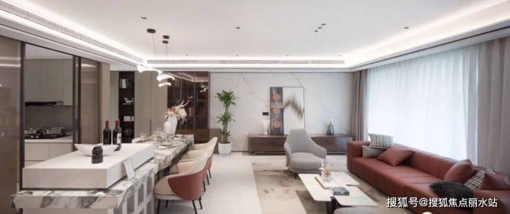 这两个户型客厅与南向卧室间没有承重墙,如果只是三口之家,可以将这间卧室打造为开放式书房,既能保障功能性,又能让整个室内的空间感、奢华感更足,项目样板间就是这样打造的。
