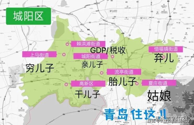 曾经在2021年初,胡Sir标记过一张图,描述了8个街道的情况。虽有夸张之嫌,但大体符合城阳各街道情况。东岸的其他城区都是越往南房价越高,而城阳的夏庄、流亭房价却总是高开低走,相反北面的城阳街道超过2万的改善新房却频现不断。个中原因,主要是城阳区是青岛非常特殊的一个区,城阳街道的人口占了全区1/3以上,局属中小学几乎占了整个城阳(不含高新区)的70%,核心商业集中也集中于此,而整个城阳街道的面积却不大(从东到西20分钟,从南到北20分钟,都是8公里范围内)。