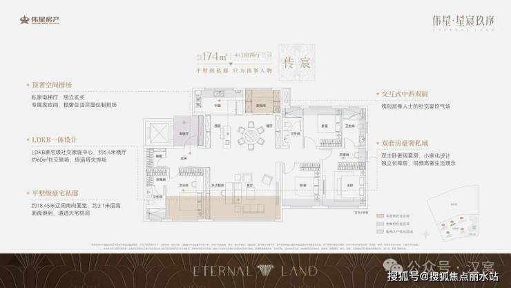 ✅ 优点:纯板楼设计,约18.45米南向面宽,双套房设计,中西双厨,奢阔尺度。
