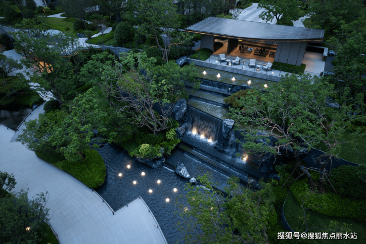奥雅股份的设计团队利用15米的山势落差,将原本的陡坡打造成充满生活意趣的舞台。蜿蜒的游步道,串联起半亩茶田、叠翠的梯田、山石乐园以及大方亭下的飞瀑流泉。拾级而下,溪水在石阶旁叮咚作响,凭栏远眺,任山风带着茶香拂面而来。