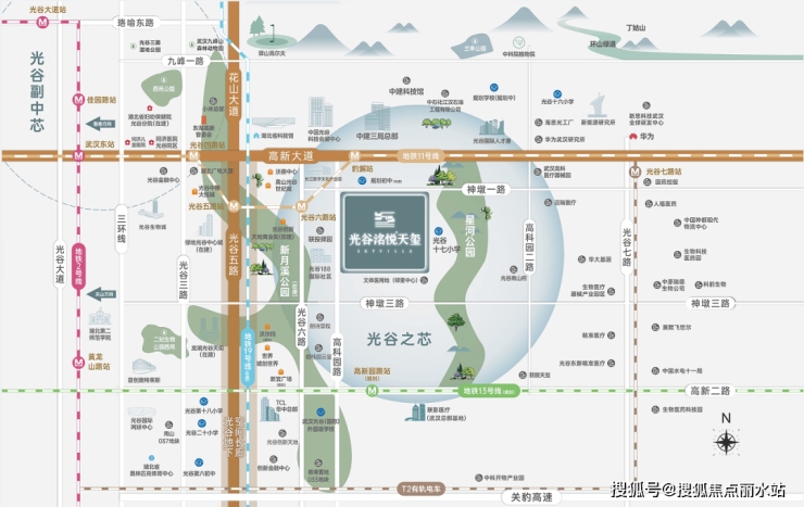 通过微观区位,你会发现光谷洺悦天玺的地段有两大特点: