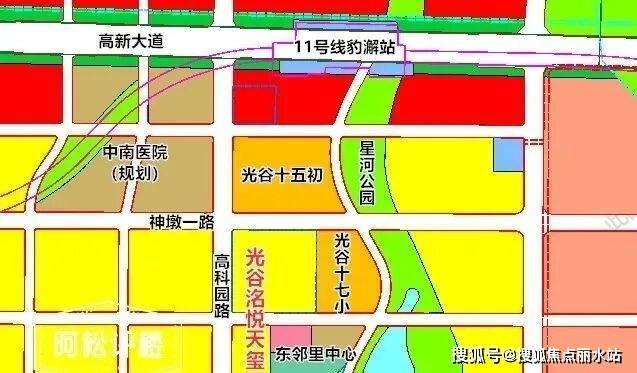东边为光谷十七小、星河公园、东邻里中心(规划);