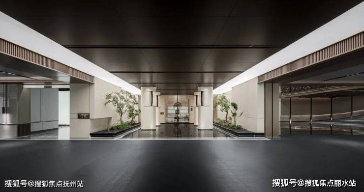 环氧聚氨酯超厚耐磨地坪、车道大面为东京银座 DIOR 旗舰店同款蜂窝铝板吊顶、车库大堂门厅使用阿玛尼奢石门把手、全区采用安达仕酒店同款无机磨石拼花地坪…