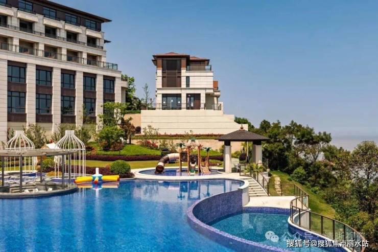 我用镜头聚焦光影与建筑的互动,阳光在建筑外立面勾勒出明暗交错的层次,波浪形屋顶在强光下更显灵动。现代的几何造型与远处的洞头本岛遥相呼应,绿化带随风摇曳的三角梅则为冷峻线条注入盎然生机。位于墅区中央的露天泳池,池水清澈见底,波光粼粼,仿佛一块镶嵌在海岸边的蓝宝石,静谧而优雅。我从不同角度捕捉泳池与建筑、自然的和谐共生,这些画面生动诠释了项目“建筑与自然共生”的理念。