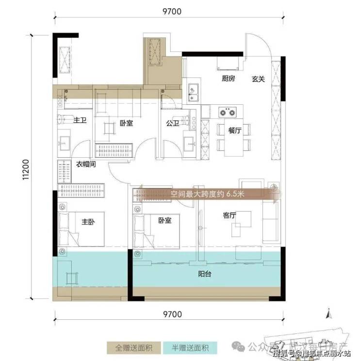 约6.5米大横厅+大两房,亦或者全功能的三房两卫,均可随心切换