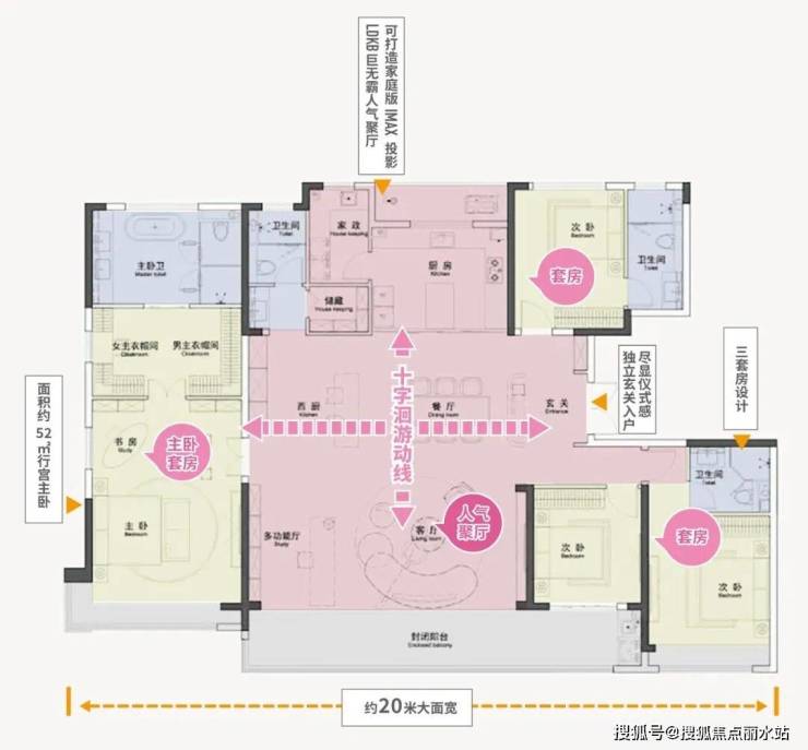 约20米的南向面宽,仿佛是一整面的巨幕观景窗,IMAX级视野十分抢眼。