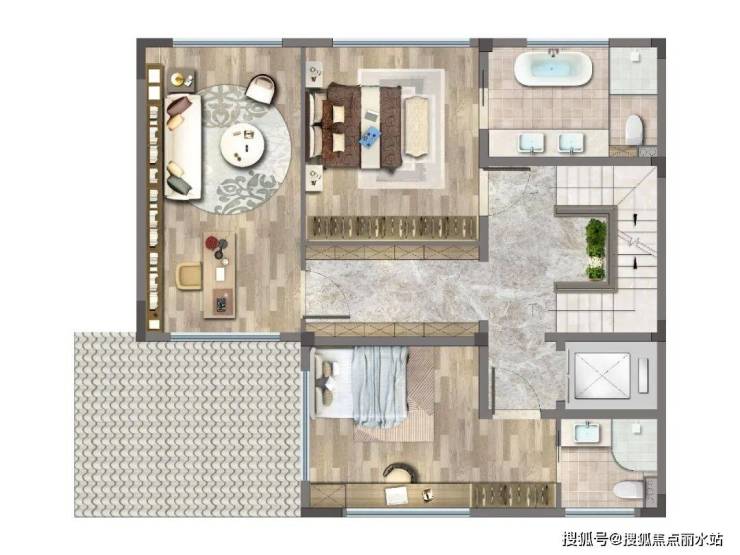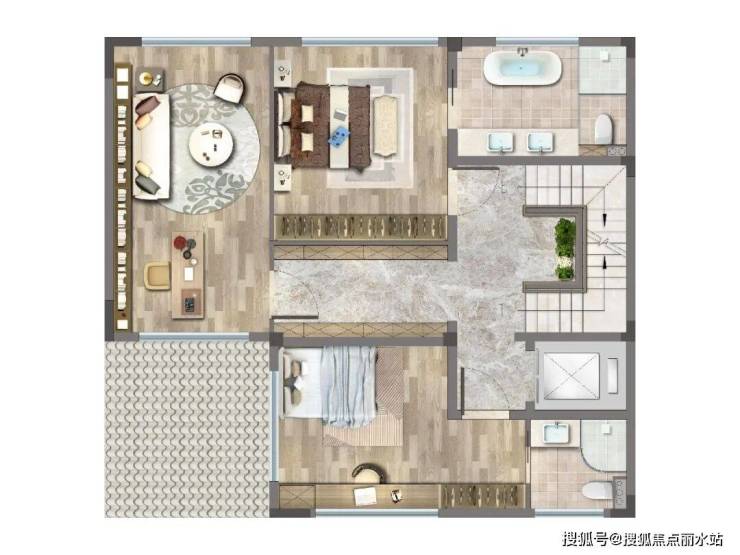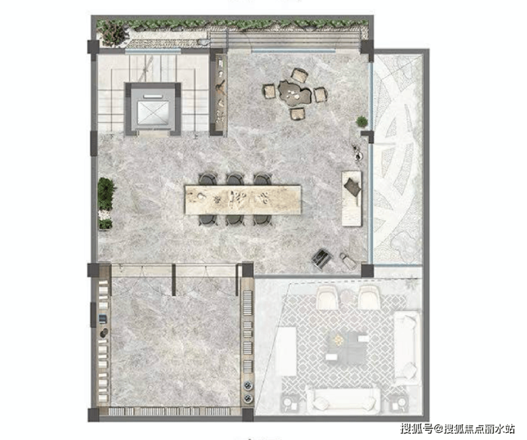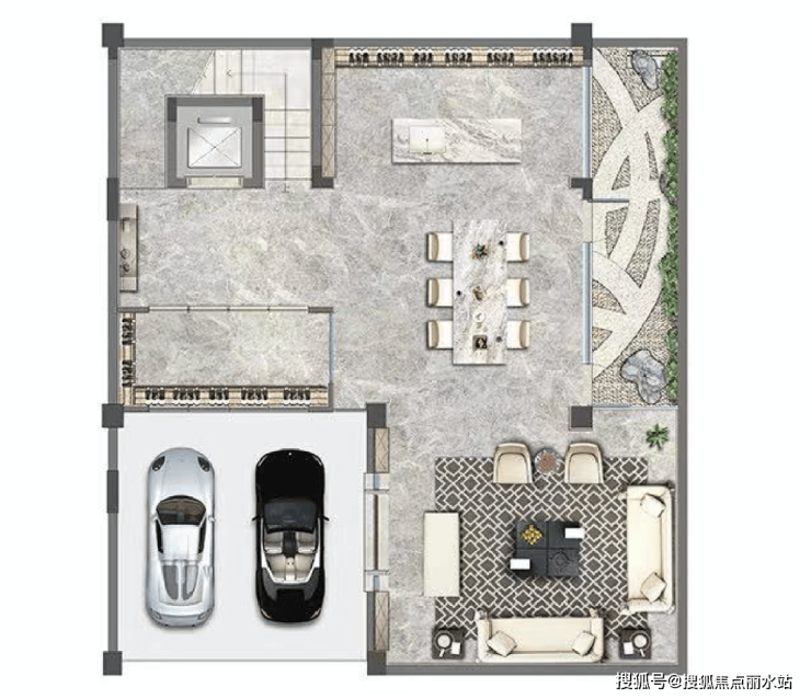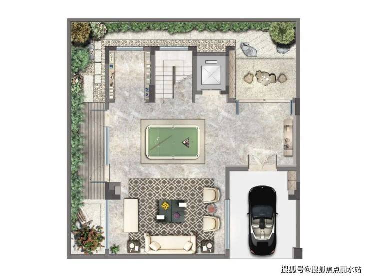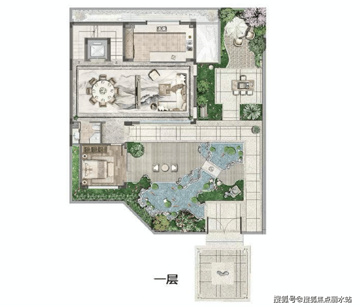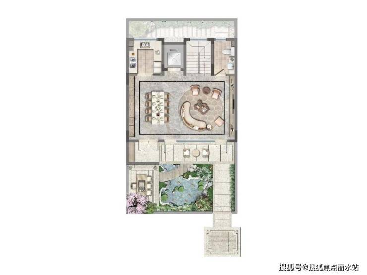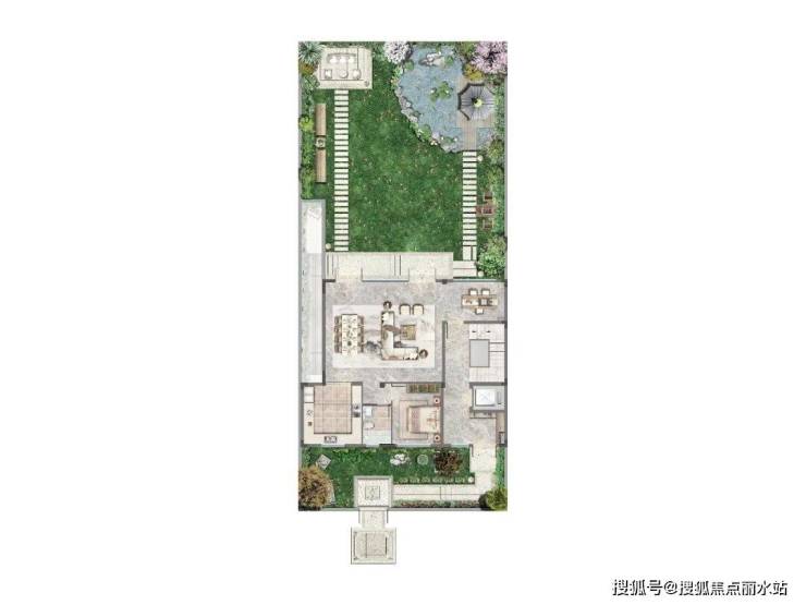 二进心远堂,四水归堂,汇财聚气,匠呈一轴七坊风雅园境,以“拱桥、叠石、花草、流水、竹篱”等元素,将中式的文化神韵与传统的山水意境优质相融。