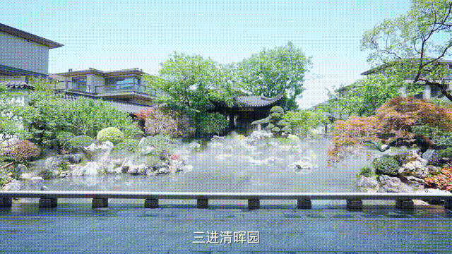 三进清晖园,以苏式园林集大成的网师园为设计蓝本,叠山理水、轩窗框景暗合古法。