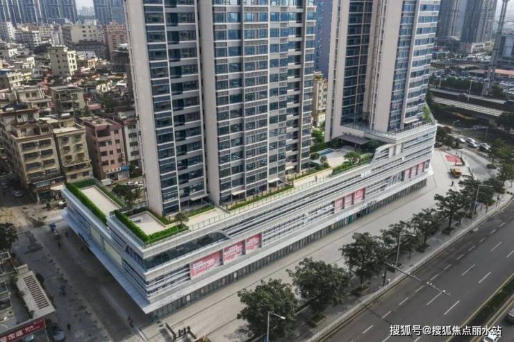 建筑采用了公建化立面的设计,有别于常见住宅裙楼底商分段式的设计,商业裙楼立面采用整体化设计,通过横线线条和优雅的弧线交织形成灵动柔美的商业裙楼立面,展现城市转角处自由流动的标志性形象,引领虎门年轻与时尚新风尚。