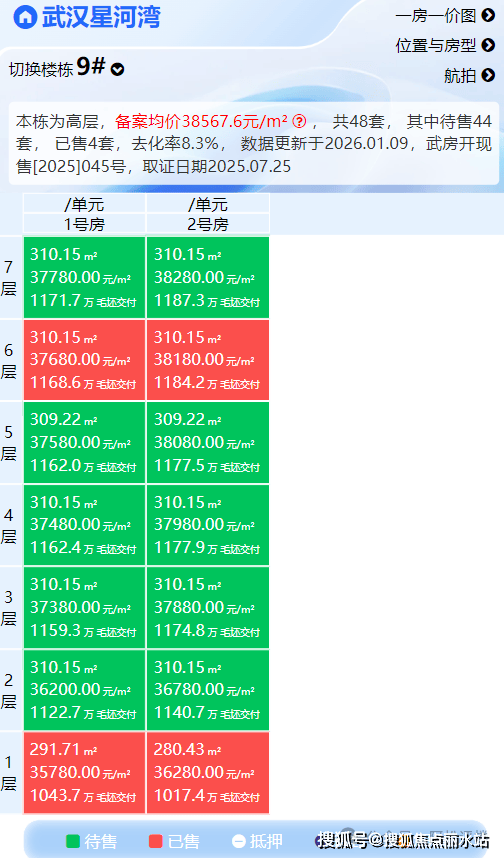 武汉星河湾7、8号楼建面约264、274㎡带装修房源及1、9号楼建面约296㎡、310㎡毛坯房均在售。