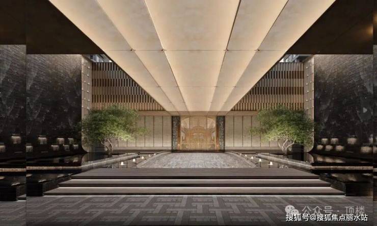 总长约88米、苏州首座大尺度流光造型宝顶及铂金长屏地标门厅;造价约150万、环岛中央非遗盆景