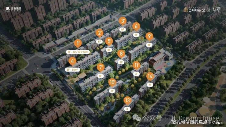 金地·中央公园 | 华章 占地面积4.7万㎡,建筑面积6.5万㎡,整个地块容积率1.2,规划13栋楼,全部为7-8层洋房,共510户,是金州目前唯一一块全部规划为第四代住宅的社区