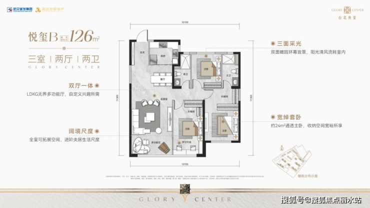 台北央玺还打造了建面约109㎡和126㎡三房,都是两卫和通透套房主卧设计,考虑改善型家庭的品质需求,方正格局、独立入户玄关、LDKG无界多功能厅、三开间朝南、全屋可拓展空间等。多元产品线,为不同阶段的改善家庭提供内环高品质生活的确定性选择。