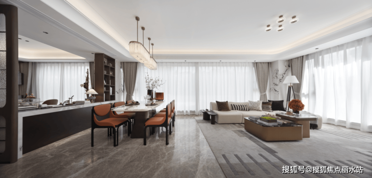 1、270°全景舱会客厅,让日常成为风景。三面采光,最大限度地享受自然和光线。无论是晨起的一杯咖啡,还是傍晚的慵懒时光,270°环幕视野和约36㎡的厅区都能将城市天际线与园区绿意框成一副IMAX级动态风景画。