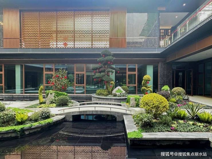 庭院设计深度融合南通“枕水而居”的在地文化,连廊、石桥、水榭等元素错落其间,山石乔木层次丰富,营造出“山石藏泉”的自然野趣,行走其间,仿佛置身江南园林。