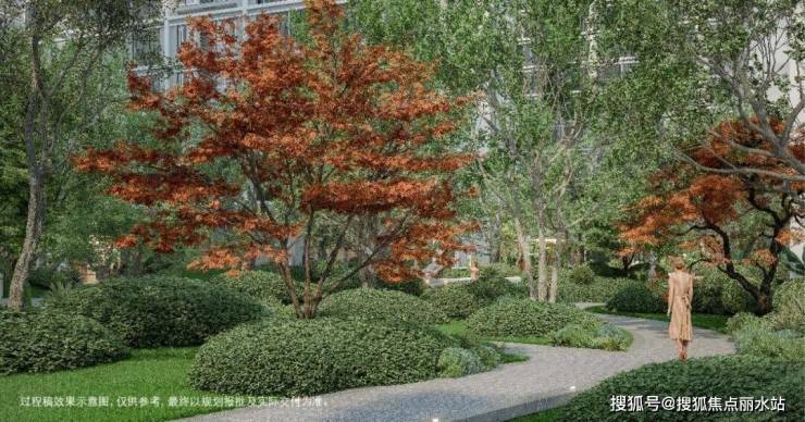 区别于常规的绿化数据追求,在保证自然覆盖率的基础上,创新营造上木层、中木层、下木层、地被层、特色植物层、季相色彩层,六重多层次珍贵林木形成的系统性园林景观,形成移步换景、四季风光俱佳的观景体验。