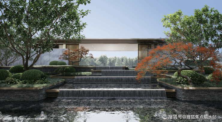 创新营造“中央景观体验轴”。以“汀水度假岛屿”为核心,设计水园相接的景观轴线,依次串联主入口、中心水景、阳光草坪、幸福剧场等核心节点,形成尊崇感与仪式感兼具的、情景交融式归家庭院体验。