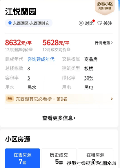 江悦蘭园二手房挂牌价约8632元/平,近期成交均价约5628元/平,整个小区共成交过5套二手房。