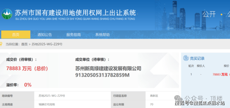 市场参考价值同样突出。地块北侧相邻的芳菲澜院地块,此前由苏州新胜以94278万元底价竞得,楼面价16171元/㎡,由苏高新集团与招商建管联合开发纯联排产品,成交均价2.35万元/㎡。此次Z29号地块以10000元/㎡起拍楼面价入市,结合1.05的低容积率,未来大概率规划联排、叠拼等别墅类产品,性价比与增值潜力值得期待。