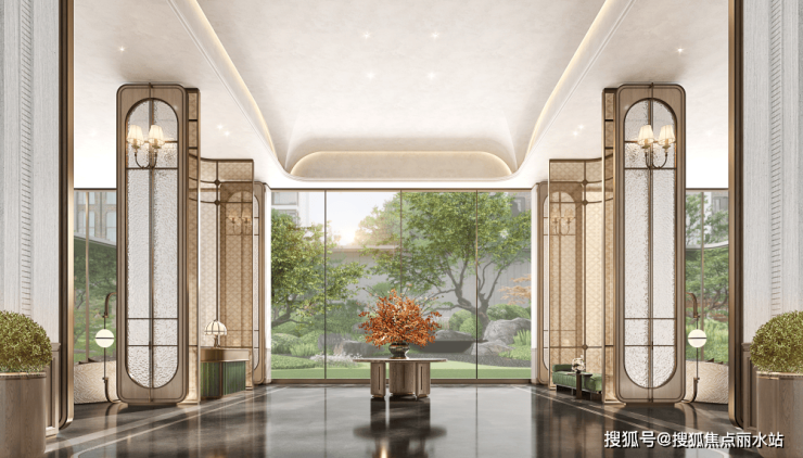 一庭:【瑰丽门庭】酒店式豪宅美学界面,以金属细节和石材彰显贵气,定制化艺术铺装彰显入口门庭;奢华大挑檐,中心设计艺术水景,增加入口仪式感;结合门楼落客等候区设计山水庭院,由恢宏门庭到自然花园,华丽向自然的过渡,彰显豪宅礼序。