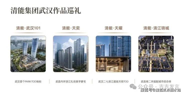旗下代表作品亮眼:清能·武汉101(武汉唯一Park-TOD地标)、清能·天奕(武昌内环滨江扎哈美学豪宅)、清能·清江锦城(武昌南二环超配综合体)等,实力印证品质。