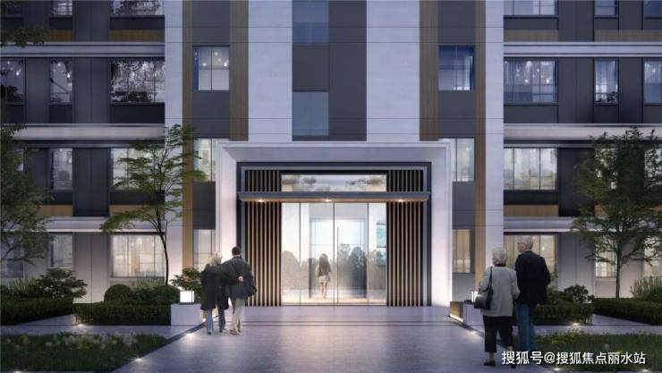 基座部分在石材、铝板和玻璃等材料搭配之下,将归家仪式感拉满,彰显居者身份。