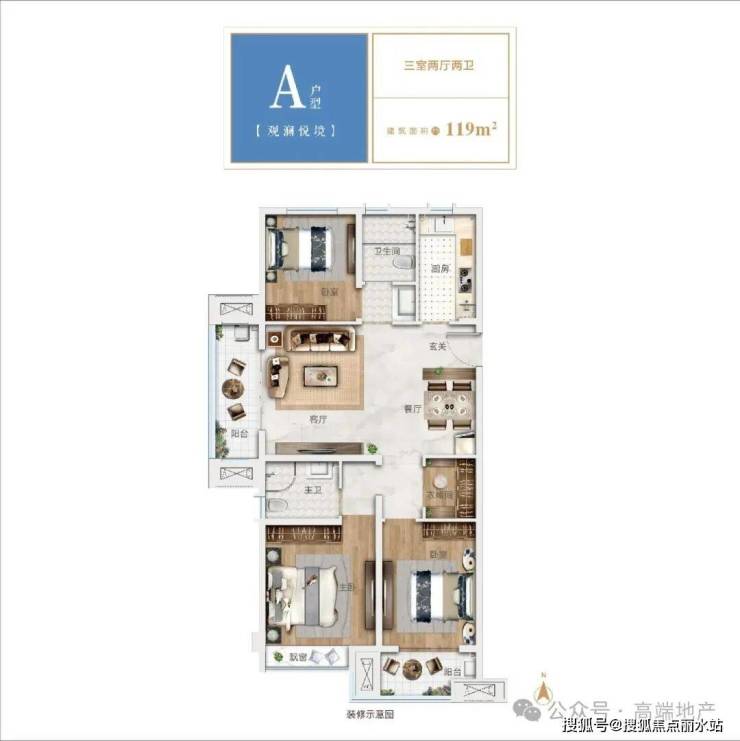 【建面119㎡3居】96.0-120.0万-分布于10号楼 ,3梯6户,层高2.90米,总楼层34F