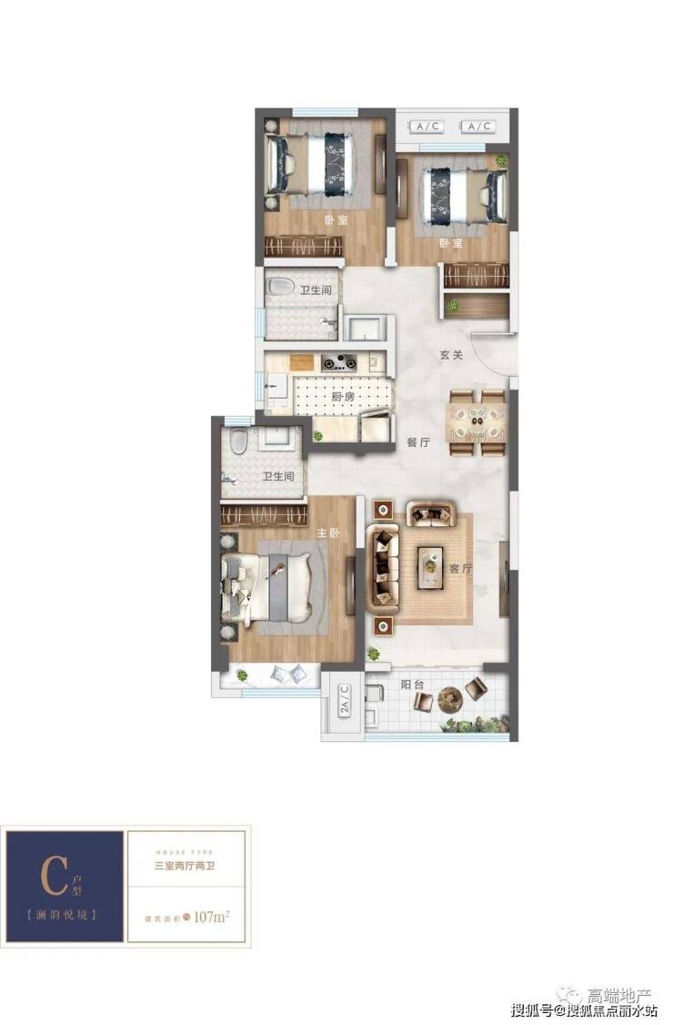 【建面107㎡3居】87.0-108.0万-分布于10号楼 ,3梯6户,层高2.90米,总楼层34F