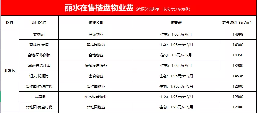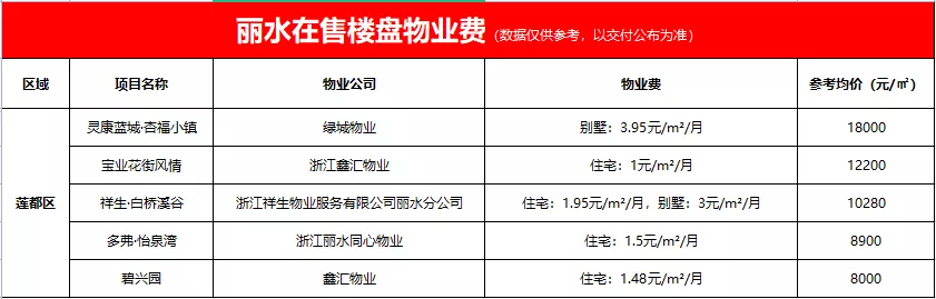 收藏!看看你家物业费收多少? 丽水在售楼盘物业费盘点