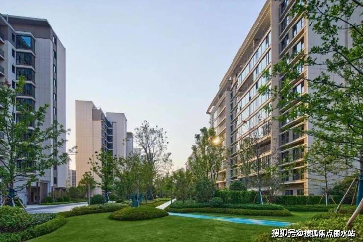 楼栋立面深浅呼应的低饱和色庄重而清新,极窄线条勾勒出的不对称梯度设计,搭配超高窗墙比,建筑辨识度拉满!