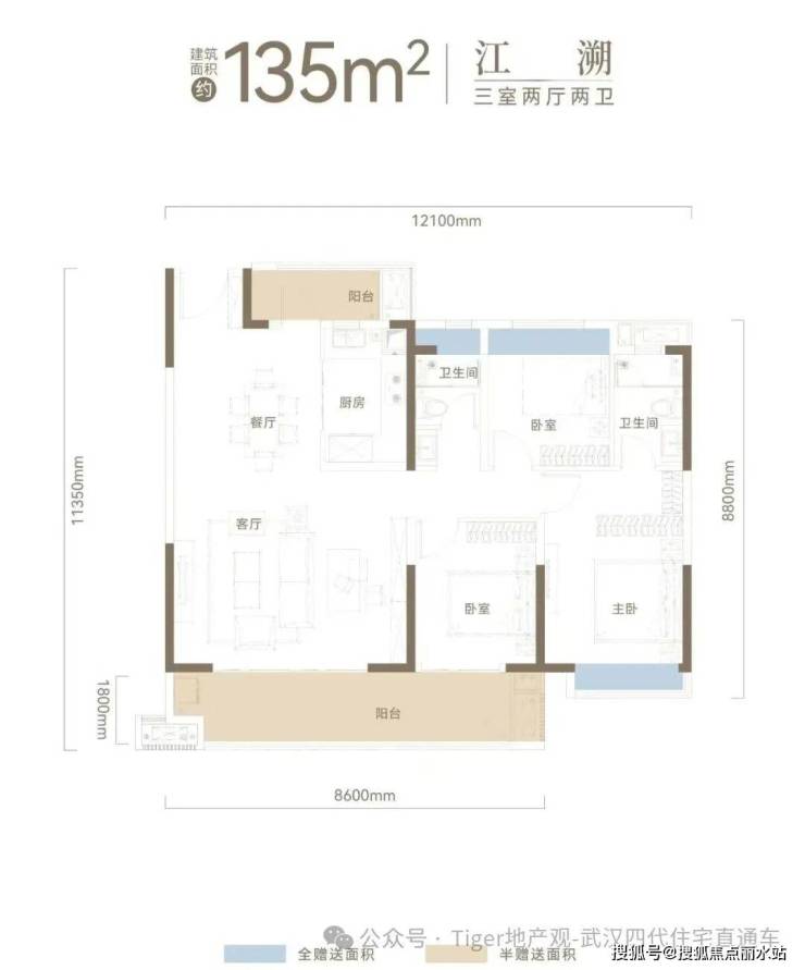 建面约135㎡户型,约12米南向面宽+超大横厅+南北阳台+中西厨+全屋飘窗。南向面宽约12米,无论是客厅还是卧室,只需轻轻拉开窗帘,阳光即刻倾泻而入。多功能厅与客厅形成约5.6米的超大横厅,比肩市场上不少约160㎡户型,满足日常的家庭聚会绰绰有余。