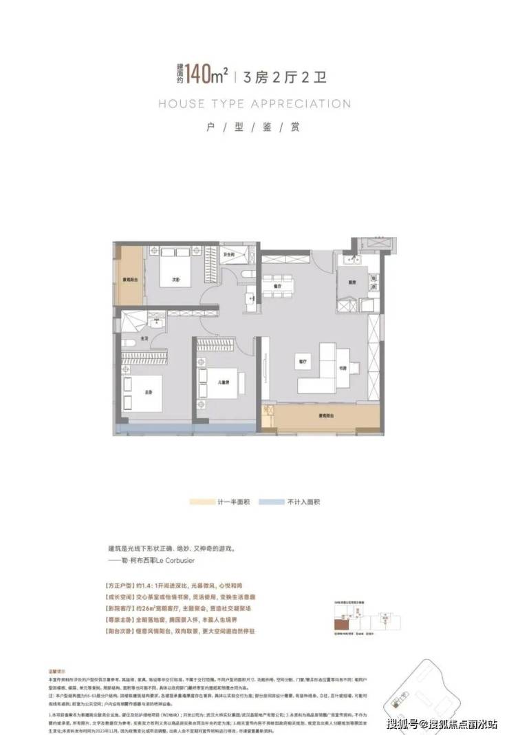 ③这款户型做到了“飘窗最大化”,两个卧室、两个卫生间都做了飘窗;4个飘窗和1个超大阳台,可优化面积较多,性价比拉满,给购房者带来了更多的实惠