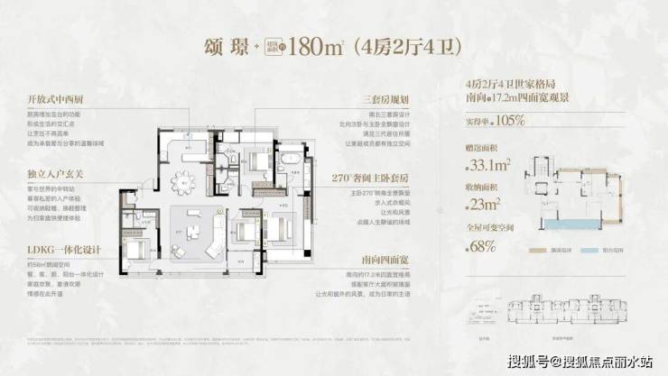 项目通过创新设计实现得房率98.7%-105%的突破,其中建面约180㎡户型赠送面积达约33.1㎡,在古城核心区堪称"空间奇迹"。