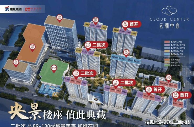 户型价格:户型类别为建筑面积约 89-143㎡的 LDKB 一体化创新户型,包括 89㎡三房两厅两卫、113㎡三房两厅两卫、130㎡四房两厅两卫等。2025 年 8 月,云潮中心(三期)毛坯普惠均价约为 22,319 元 /㎡,折扣以 93 折计,具体折扣以案场为准。